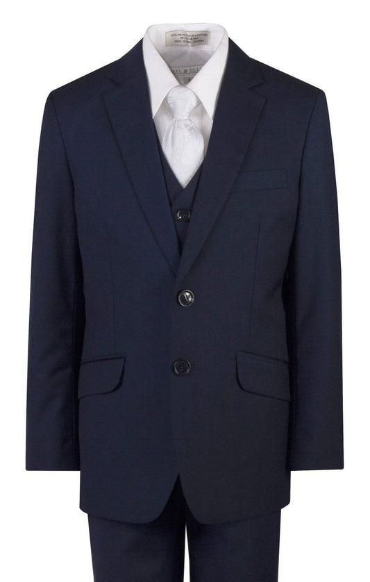 Azul marino, corte entallado, traje religioso, corbata para el cuello, tallas para niños pequeños y jóvenes